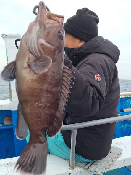 12月7日 今日はハタ、ヒラメ釣りに出ました‼️今日もナギだったので沖に、昨日よりも当たりが多くてお土産になりました😄マハタ0.5~2.46㌔、2.38㌔、を頭に0~4本、ヒラメ1.3㌔~3.54㌔で0~2枚、ゲストにカサゴ、マダイ、マトウダイ