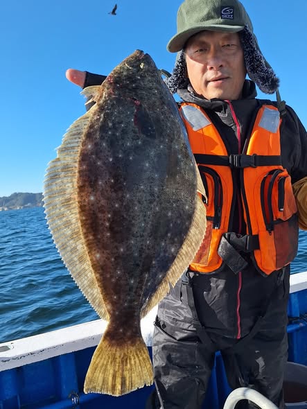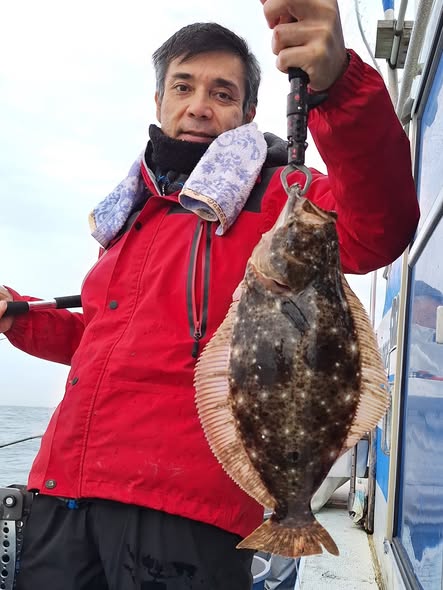 11月24日 今日はヒラメ釣りに出ました‼️朝9時までヒラメの顔見れず焦りました😅場所移動してから良い所に入ったのか入れ掛かりで皆さんお土産になりました😄ヒラメ1.1㌔~2.72㌔で1~3枚❗