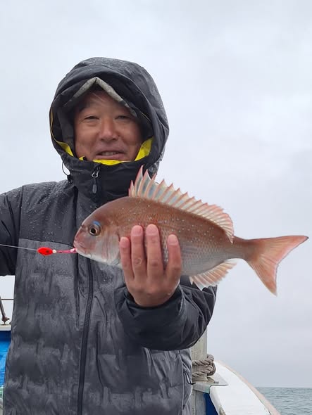 11月9日 今日はマダイ釣りに出ました‼️☔予報だったけど2名様来て頂いて出れました😄タイは小ぶりが多かったけど数釣れてお土産になりました😄マダイ0.3~0.9㌔で9~15匹、ゲストにカサゴ、番外編でヒラマサ1.18m、19.5㌔釣ってしまいました😄