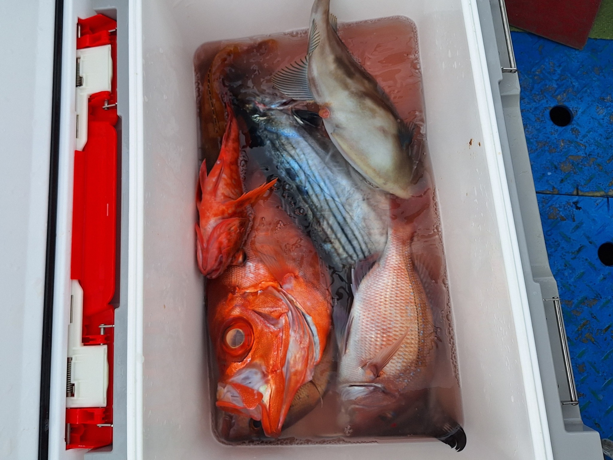10月29日 今日はハタ釣り専門で出ました‼️風吹いてて海悪かったけど何とか良型混じりでハタがポツリポツリ、途中で大鯛がダブルヒット✌任務完了で良い釣りが出来ました😄マハタ0.4~2.7㌔で1~4本、船中13本、マダイ3.5㌔と5.9㌔、赤ヤガラ