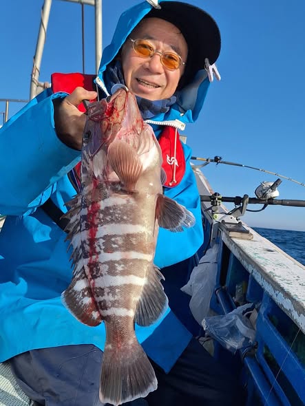 11月27日 今日はハタ釣りに出ました‼️沖に出て潮が速かったけど何とか釣れました😄マハタ0.8~2㌔で0(1名)~3本、ゲストに赤ヤガラ、マダイ